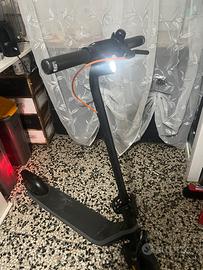 vendo monopattino elettrico tenuto molto bene con freccie preinstallate e ammortizzatore anteriore,velocità massima 25km autonomia 20km compreso di lucchetto carte e scatola.