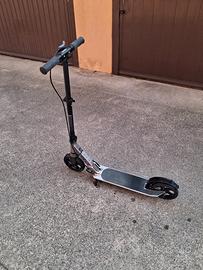monopattino Non elettrico, per ragazzi e/o adulti, con freno anteriore e posteriore, ammortizzatore anteriore. altezza manubrio regolabile, il manubrio si piega per poter trasportare il monopattino. usato poche volte, come nuovo. solo consegna a mano.