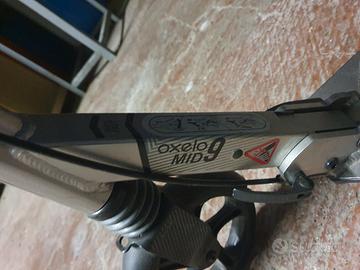 monopattino oxelo mid 9 tutto in alluminio ripieghevole adatto ad adolescenti dai 9 a 14 anni, è dotato di una sospensione anteriore e freno posteriore al manubrio ruote grandi e cavalletto laterale, il monopattino è in buone condizioni pari al nuovo.