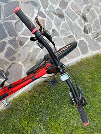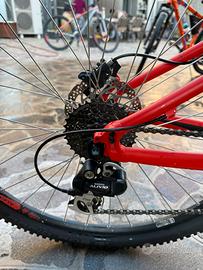 Vedo MontainBike Cube modello Aim 29” con telaio in alluminio leggero con forcella anteriore ammortizzata da 100 mm e sistema di bloccaggio, freni a disco Shimano, cambio Shimano Altus 8x3, con 24 velocità, sella Medicus in gel + sella originale, computer da bici Sigma con sensore di cadenza, taglia S.