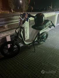 ACCETTO ANCHE SCAMBI Marca:Reset yes Il motorino si presenta come in foto messo molto bene Accelleratore a 3 marce Motore da 250w Centralina 500w Marcia 1: 35kmh Marcia 2:46kmh Marcia 3:65/70kmh 3 batteria a litio 48v collegate in parallelo per avere piu ah tot di 55ah circa Sotto sella con poco spazio perche ho messo la 3 batteria Faro solo anteriore posteriore si era rotto e non lo piu rimontato Frecce non collegate cedo il releé per poterle collegare la freccia destra va sistemata Freni a tamburo sia anteriore che posteriore Peso massimo che puo portare 150kg omologato per due persone Non ha piu i pedali è diventato un motorino Non ha bisogno ne di targa ne di casco ne di assicurazione Non ha la chiave di accensione perche la avevo dentro il borsello e me lo hanno rubato in metro quindi si accende attualmente con hn pulsante il blocco chiavi nuovo costa 5/10€ Ruote da 18x2.50 Deve arrivarmi la centralina nuova uguale a quella che gia montava sara disponibile dopo il 13 di aprile per venirlo a vedere il motorino Il motore non ha i sensori hall perche si sono rotti e li feci togliere dal tecnico per rimetterli costano 5€ e do anche il cavo interno originale del motore prezzo 650€trattabile non accetto offerte ridicole astenersi perdi tempo mi trovo in zona fontana candida due leoni della metro c roma