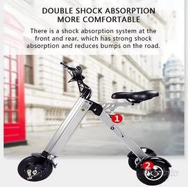 Vendo motorino triciclo elettrico pieghevole e portatile, utile sia per studenti che per persone con ridotta mobilità.