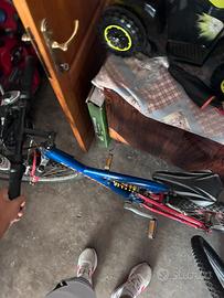 La bici è un po vecchia ma funziona perfettamente,ottima per lunghe passeggiate con molla dí ammortizzazione gialla in vista unica cosa da cambiare sono le manopole un po rotte