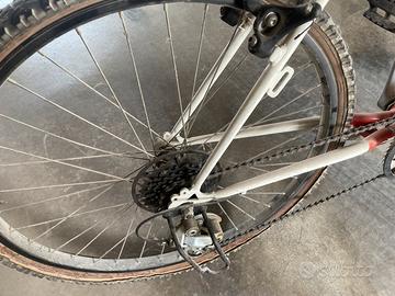 Mountain bike per ragazzo/adulto da sistemare perché ferma da tre.. Ruote ancora in buone condizioni, ma camere d’aria da cambiare. Cambio con tre corone davati e 5 dietro La vendo per inutilizzo..