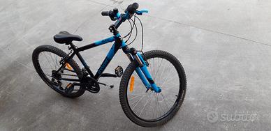 Mountain bike 24" BTWIN - colore blu/nero con ammortizzatore anteriore, rapporti di velocità 3x6 in ottime condizioni.
