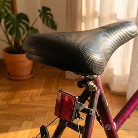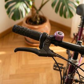 Telaio ribassato comodo e sicuro, cambio Grip Shift 3x6 da 18 velocità, forcella ammortizzata Anti Shock On, completa di borraccia, cavalletto e campanello coordinato 💜🔧⚙️