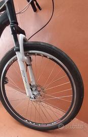 Vendo bici con telaio in lega leggera. Attualmente monta copertoni stradali/da città (misura 27.5 x 2.0), compresi nel prezzo cedo anche i copertoni tassellati da Mountain Bike (ultima foto) + camera d'aria. La bici presenta un freno a disco anteriore ed è perfettamente funzionante. Vendo per inutilizzo e mancanza di spazio.