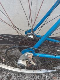 Mountain bike con ruote non tacchettate da 28" con 5 rapporti e manettino del cambio sulla canna e cavalletto. La bici è completamente funzionale e necessita solo di qualche manutenzione estetica. Ritiro a mano