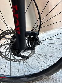 180 mm anteriore e 160 mm sul posteriore, bloccaggio ammortizzatore anteriore su manubrio,6 rapporti marcia e guarnitura tripla shimano sellatura argo e borraccia. La bici è come nuova solo qualche leggero graffo Comprata nel 2021 vendo per inutilizzo