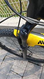 Vendo mountain bike Olympia TAGLIA L come nuova, si può vedere dai copertoni e dallo stato del cambio e del telaio. Sempre manutentata, pulita e tenuta al coperto. Forcella a aria regolabile rock shox judy silver 29 con blocco e sblocco rapido al manubrio. ruote da 29' Monocorona anteriore 34t e cambio posteriore 11/50 tutto Sram sx eagle Freni a disco idraulici shimano Copertoni originali da 29’ x 2.25 Vendo per inutilizzo.