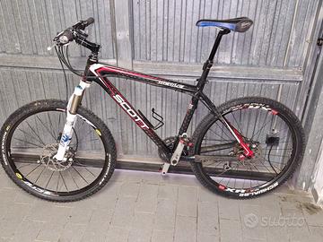 Mountain Bike SCOTT Scale 20 taglia L (adatta a persone alte 175/185 cm) 26" anno 2012 in carbonio montata Shimano XT ruote Mavic forcella Fox 100 mm freni disco idraulici Shimano XT dotata di reggisella telescopico 120 mm con comando al manubrio. Bici Race leggera e mai usata per gare, solo escursionismo. Perfettamente funzionante