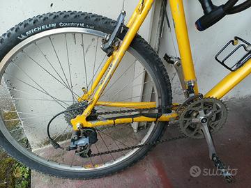 Mountain bike trekking, anni 2020, però monta componenti di qualità eccezionali: manubrio ITM in alluminio, cambio Shimano Deore LX, Sella San Marco, forcelle Marzocchi con attacco per freni a disco, pedali sport, gomme Michelin, cerchioni alluninio....ecc. Solo uno di questi componenti vale il prezzo della bici!!