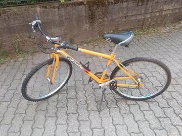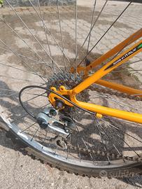 Vendo mountain bike Atala Trophy (Made in Italy) in ottime condizioni meccaniche, ideale per la città o per escursioni nel tempo libero. La bici è stata recentemente controllata e messa a punto: Meccanica: Cambio Shimano SIS a 21 rapporti (3 corone anteriori x 7 pignoni posteriori) perfettamente funzionante e fluido. Manutenzione: Camere d'aria nuove appena sostituite e freni regolati per la massima sicurezza. Stato: Funzionante in ogni sua parte, pronta per essere pedalata da subito senza ulteriori spese di riparazione. Accessori: Cavalletto laterale, porta borraccia e sella comfort. Telaio robusto e vernice originale giallo vivace. Qualche piccolo segno estetico dovuto al tempo che non influisce minimamente sulle prestazioni. Raggio 26 No affaristi e perditempo