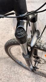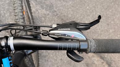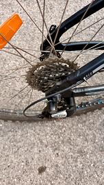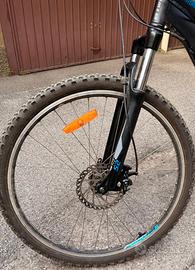 Bici Mountain Bike usata molto poco, in perfette condizioni. Freno anteriore a disco, ammortizzatori anteriori regolabili, cambio shimano, cavalletto incluso.
