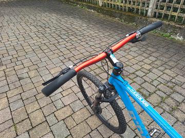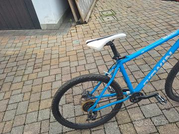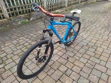 Mountain Bike B-Twin RockRider 500 azzurra. Impugnature e manopole freni nuove, gomme in ottimo stato