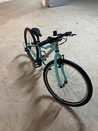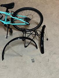 Bici 24 pollici, telaio small, per bambini di altezza da 1,15 a 1,40, mezzo di altissima qualità interamente in alluminio ALU 6061 dell’azienda tedesca PYROBIKES, condizioni perfette, manutenuta a livello professionale, sempre registrata, pulita e lubrificata, acquistata nuova nel 2024 ad euro 650,00, la più leggera bici in alluminio sul mercato (peso 8,60 kg), con pneumatici stradali slick Kojak della Schwalbe semi nuovi + treno pneumatici all terrain Mow Joe della Schwalbe mai utilizzati (montati di serie), freni Tektro V-brake, cambio microShift 8 rapporti, cavalletto, borraccia e porta borraccia, VENDO a veri appassionati insieme a portapacchi della Racktime, parafanghi della tedesca SKS completi di bulloneria originale, e bandierina segnaletica gialla altezza mt 1,60 ripiegabile. Valore complessivo del lotto, compresi accessori extra: euro 850,00. Vendo tutto a euro 240,00. Qualsiasi prova, qualsiasi immagine video/foto, consegna anche di persona. Regala al tuo bambino il piacere di andare in bici con un mezzo super leggero dalla meccanica avanzata, con un peso pari a quasi la metà di una normale bici in acciaio di pari misura!
