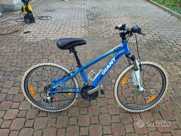 Mountain bike Giant bambino/a 24'' (8-12) anni, cambio Shimano e forcella anteriore ammortizzata. In ottime condizioni, necessita verosimilmente della sostituzione delle camere d'aria in quanto inutilizzata da un po' di tempo. Ottimo affare!