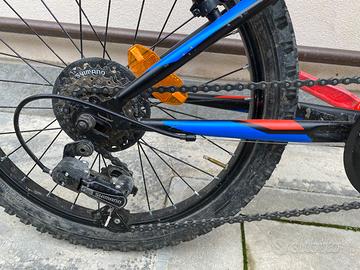 Vendo bicicletta da bambino con cambio SHIMANO misura “20 usata solo per allenamento e gare di triathlon ha ancora la plastica protettiva sui pedali.. difetto segnalato nella foto dove si è rovinata la sella Ben tenuta