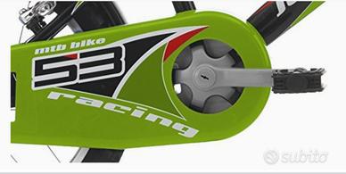 Mountain bike bambino marca Cicli Cinzia, telaio in acciaio, colore nero e verde, dimensione ruote 16 pollici, senza cambio. Cavalletto e rotelle comprese. Ottimo stato.
