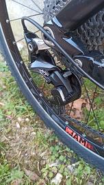 Vendo bicicletta Mountain bike biammortizzata marca Cube, con freni a disco, canotto sella telescopico, cambio Shimano Deore XT , sella come in foto+ sella originale nuova. Escursione ammortizzatori 14 cm . La bici ha fatto pochi chilometri , i copertoni sono ancora quelli di serie. Nel prezzo sono compresi anche un lucchetto a piastre pieghevole, una pompa alta pressione per ammortizzatori e forcelle, kit olio freni e lubrificante per catena.