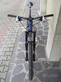 Telaio Kona, made in Canada, indistruttibile; Ruote da 26". Forcella originale e ammortizzatore carro, sostituiti con Marzocchi da 150 mm (quando era ancora made in Italy!). Freni a disco originali sostituiti con freni Hayes Stroker da 200 mm, idraulici, per una frenata potente.