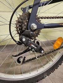 Vendo per inutilizzo mountain-bike blu per bambino (7-12 anni) con doppia sospensione (forcella e telaio ammortizzato). COMANDI DEL CAMBIO SHIMANO POSTERIORI NUOVI. Presenta 21 rapporti (3x7). Ruote da 24 pollici. In buone condizioni usata pochissimo. COMPRESO NEL PREZZO UNA COPPIA DI COPERTONI QUASI NUOVI. Disponibile per provarla ed eventualmente trasportarla in zona provincia di Torino nord / Canavese.
