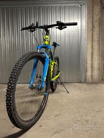 Mountain bike da discesa: freni a disco, doppia ammortizzazione frontale regolabile, cavalletto e lucchetto inclusi. Ottimi materiali, la terrei ma è diventata piccola. Spero di poterle dare una seconda vita a qualcuno che possa apprezzarla come me! Disponibile a trasportarla in nord Italia, Austria, Svizzera.