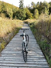Vendo mountain bike Marchetti in ottime condizioni, taglia S. La bici dispone di ammortizzatori anteriori, 3 corone, portaborraccia, cavalletto e campanello. Bici molto leggera, colore bianco.