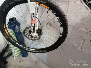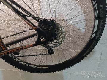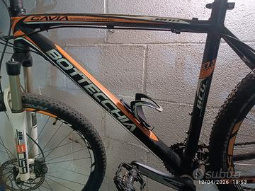 Bottecchia Gavia 27.5. Si tratta di una bicicletta hardtail che fa parte della linea "Reparto Corse" di Bottecchia, progettata come modello entry-level per il cross-country. Telaio:Realizzato in lega di alluminio 6061 a doppio spessore (double butted), con geometria ADB testata. Sospensioni:Forcella ammortizzata, da 100mm di escursione. Trasmissione:Gruppo misto Shimano, a 10 velocità. Ruote e Pneumatici:Ruote da27.5 pollici