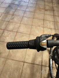 Mountain Bike Brera Fire GTI 24". LA GOMMA ANTERIORE È BUCATA, per il resto è in buone condizioni pronta per l'uso una volta sostituita! TELAIO - Telaio Hi-ten - Forcella Hi-ten ammortizzata FRENI - Freni Alluminio V-brake - Leve freno Alluminio RUOTE - Cerchi Alluminio - Dimensioni ruote 24″ - Pneumatico 24×1.90 (anteriore bucato) TRASMISSIONE - Cambio Shimano TY21 - Deragliatore Shimano TZ30 - Comandi cambio Shimano Revoshift - Cassetta Shimano 6V - Guarnitura Hi-ten tripla COMPONENTI - Piega manubrio Hi-ten - Attacco manubrio Hi-ten - Reggisella Hi-ten - Pedivella Hi-ten EXTRA - Cavalletto incluso
