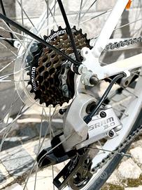Elegante Mountain bike White, come nuova. Cambio 21 marce SHIMANO SRAM 3.0 - Parafanghi anteriore e posteriore. Corona proteggi catena. Sella ammortizzata, di alta qualita e comfort marca “Selle Italia”. Borsetta porta cammera d’aria di ricambio incluso accessori. Cavalletto solido e regolabile. Campanello segnalatore acustico. Incluso nel prezzo: ampio e solido cestello anteriore, con sistema di facile attacco e stacco. Ritiro a mano.