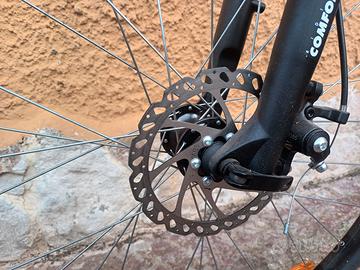 Vendo mountain bike per inutilizzo, con copertoni ancora originali unico proprietario pochissimi km circa 9/10 reali, acquistata, provata e posta in garage. La bici è praticamente nuovissima come da foto del pignone e dei dischi freni. Tg L - ammortizzata anteriore, otto cambi, monocorona sessun segno di usura. Prezzo 250,00 non trattabili, pagata 399,00 euro. Contatti tramite chat.