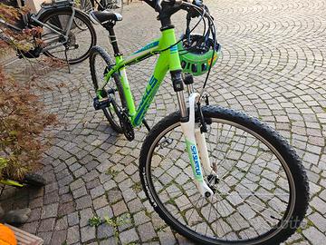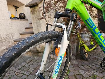 Vendo fantastica mountain bike del marchio BULLS, un'ottima scelta per chi si avvicina al mondo della MTB o cerca una bici robusta e affidabile per sterrati e percorsi misti. Il colore verde neon la rende non solo accattivante, ma anche molto visibile. Specifiche Tecniche: Telaio: Alluminio leggero, geometria versatile, in colorazione verde fluo con grafiche blu e bianche. Misura [Inserisci la misura qui, se la sai, altrimenti scrivi "media"]. Forcella Ammortizzata: SR Suntour [Modello specifico, es. XCM/XCR], essenziale per assorbire gli urti e garantire comfort e controllo sui terreni sconnessi. Pneumatici: Copertoni Michelin Country Cross (misura 26" o 27.5" [Inserisci la misura corretta qui]), battistrada tassellato per un'ottima trazione su fango e sterrato.