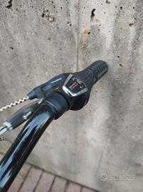 Mountain bike adatta a bimbi/e dai 5 agli 8 anni. Cambio a 6 rapporti Shimano RevoShift. Forcella ammortizzata. Sella Royal. Manopole Progrip. Freni in metallo con cavi custom. Pedane posteriori. Cavalletto.
