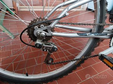 Mountain Bike cerchio 26” praticamente nuova, le condizioni parlano da sole – utilizzata tre o quattro volte e poi riposta in box – biammortizzata - movimento con corona tripla e 6 rapporti posteriori – unisex – adatta per statura da 160 a 180 cm - pronta per salire e pedalare – vendo euro 75.