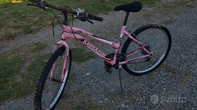 mountain bike usata, purtroppo è leggermente rovinata dal tempo, catena e manubrio arrugginiti ma ancora ben funzionanti, il sellino a un graffio.