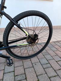 Vendo mountain bike da donna ibrida freni a disco, cambio e freni schimano, telaio in alluminio, ammortizzatori anteriori regolabili, ruote da 26,vendo x inutilizzo adoperato 4 volte acquistata in un negozio di cicli non centro commerciale