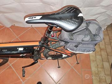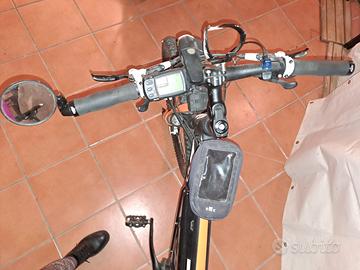 Mountain-bike elettrica Modello e-RACE KTM, completa di sella ammortizzata, portacellulare, portaborraccia anteriori e zainetto posteriore. Cambio SLX, freni a disco anteriori e posteriori, specchietto, blocco forcelle, 3 rapporti davanti e 10 rapporti dietro XT, motore Panasonic su ruota. Batteria revisionata. Computer multifunzione. Adatto a persona con altezza 1.72 cm. Pneumatici con anima antiforatura. Vista e piaciuta. Solo se interessati. Pagamenti contanti.