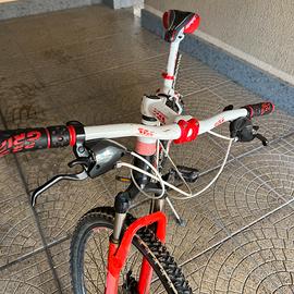 Vendo bici mtb raggio 27,5. La bicicletta è in po’ sporca e sul manubrio ad esempio è venuta un po’ via la vernice perché rimasta inutilizzata per qualche anno, per tutto funziona perfettamente, marce, freni non usurati.