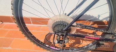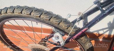 MTB fine anni 80, 3 corone sull'anteriore e 8 rapporti posteriore, ruote da 26, freni a pinza con pattini, no sospensioni,