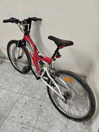 Mountain bike in buone condizioni, cerchio 20, cambio a 6 marce e 3 modalità, sellino regolabile e luce dietro di segnalamento. Bisogna solo gonfiare le gomme.