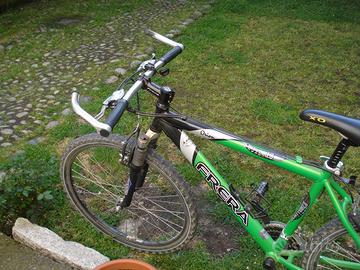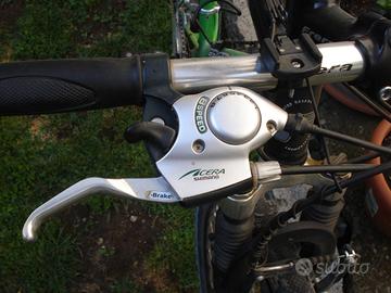 Bicicletta usata solo in città o fuori strada di campagna ma senza gare solo per passeggiate. Telaio 18,5" x 22". Tutta SHIMANO. Telaio in alluminio. Ammortizzatori anteriori. Praticamente invecchiata in garage. Può andare bene anche per un adulto non alto o per donna. Prezzo trattabile. Regalo copertoni ancora usabili.