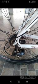 Vendo MTB front Olympia modello Leopard ruota da 26, telaio in alluminio, forcella anteriore Look out bloccabile meccanicamente, cambio Shimano Alivio (3 corone, 7 pignoni) , sella Selle Italia, pedali in alluminio, freni v brake, copertoni al 50 %,completa di conta km, borsetta portaoggetti e due camere d'aria di ricambio, il tutto in buono stato