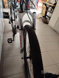 Vendo per inutilizzo bicicletta frw, ruote da 29 pollici, telaio in alluminio ammortizzata all'anteriore, forcella bloccabile e pedali combinati con piastra di appoggio e attacchi spd