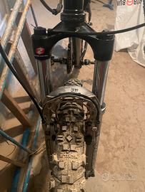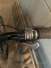 Mountain bike con cambio a 9 marce, ammortizzatore frontale, blocco ammortizzatore a manubrio, pedali sportivi, freni a tamburo, unica cosa da cambiare sono le manopole poiché sono datate