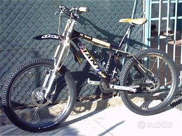 Mountain bike biammortizzata primi anni '2000. Molto bella, conservatissima, ferma da diversi anni ma ancora funzionante. Telaio Giant AC-Team, ammortizzatore posteriore Rock Shox molla-olio, forcella doppia piasta Marzocchi Junior T, ruote da 26, freni a disco idraulici Grimeca Sistema 11 (non banali). Ottima anche per esposizione ma ancora perfettamente usabile. Credo di avere anche il libretto originale del telaio. Davvero molto bella, un tuffo nel passato. Prezzo trattabile. Non spedisco, visibile a Firenze.