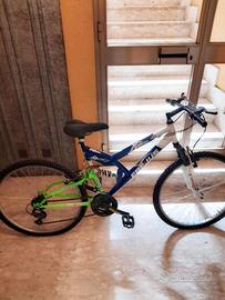 Causa totale inutilizzo, vendo, anche separatamente, due mountain bike usate solo alcune volte. Mountain bike Giant Terrago, cambio Shimano, portapacchi posteriore, doppia borraccia, gommata nuova, € 250 non trattabili. Mountain bike Frejus FM 626, cambio Shimano, ammortizzata, € 150 non trattabili. Inutile scrivere proponendo altri prezzi, non si avrà risposta. Non spedisco, ritiro in loco o tramite corriere inviato dal compratore, successivamente al pagamento. Mountain bike visionabili e disponibili per qualsiasi prova.