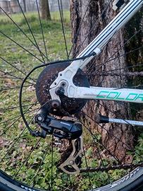 Mountain bike Gitan Colorado con telaio in alluminio, ruote 26", forcella ammortizzata anteriore, cambio Shimano (posteriore Tourney), freni V-brake. Bici funzionante, adatta a uso quotidiano, sterrato leggero o città. Normali segni di usura da utilizzo.
