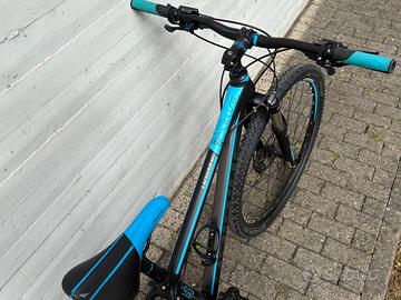 Modello: Haibike Edition 9.60 Tipologia: Mountain Bike Hardtail Ruote: 29 pollici Ideale per chi vuole interfacciarsi con questo mondo e cerca un prodotto performante e affidabile. Dati Tecnici: Telaio: Alluminio 6061 con geometria sportiva. Forcella: SR Suntour XCT con regolazione del precarico. Trasmissione: Gruppo Shimano a 24 velocità (3x8). Freni: Impianto a disco idraulico (Tektro/Shimano) con rotori da 160mm. Cerchi: Ryde DB19 in alluminio a doppia camera. Pneumatici: Schwalbe Smart Sam 29x2.10 (battistrada in buono stato). Stato d'uso: Meccanica: Bicicletta perfettamente funzionante in ogni sua parte (cambio, freni, ammortizzatore). Estetica: Presenti alcuni graffi superficiali da normale utilizzo (come visibile in foto). Telaio integro, nessuna bozza o danno strutturale. Adesivi leggermente rovinati, ma facilmente rimovibili. Note: Manopole usurate a causa del tempo Per qualsiasi domanda o informazione contattare tramite subito