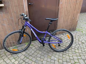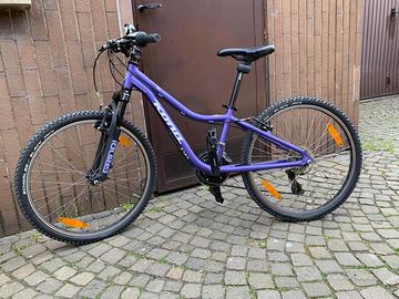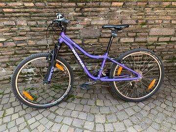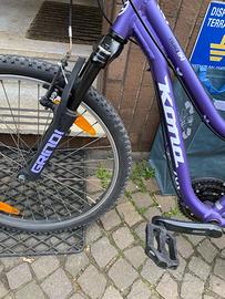 Mountain bike Kona Hula, ruote 24 pollici, indicata per una fascia di età compresa tra i7 e gli 11 anni. Telaio in alluminio 6061, cambio Shimano